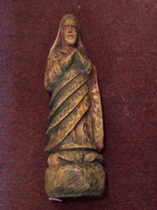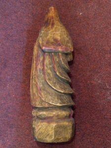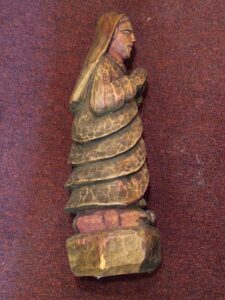 Talla brasilera en madera de figura religiosa. Item #1876 Ver también: Botellón de cristal tallado Montura de camello Espejo ovalado Tallas de Cabezas de animales << volver al listado